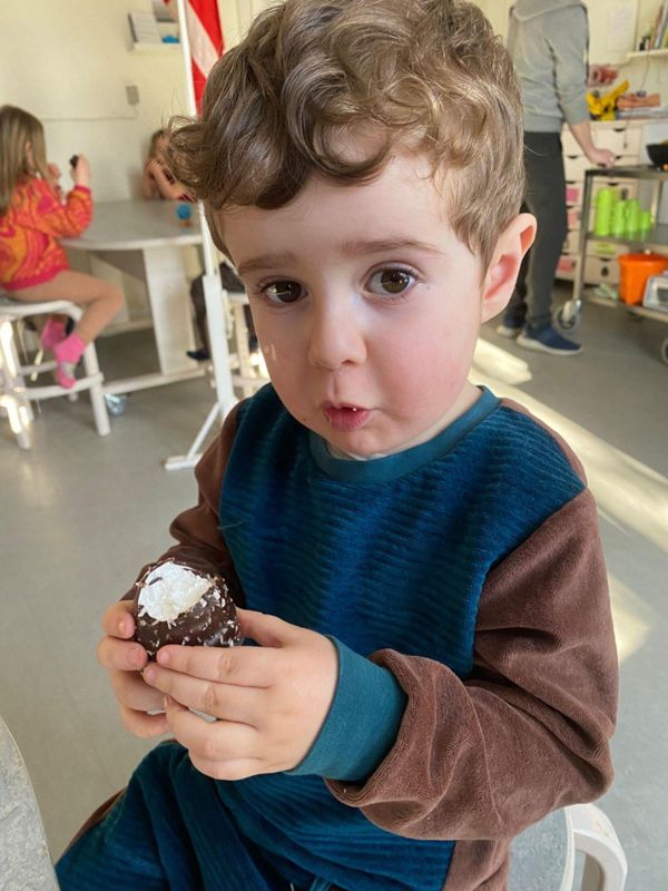 Til fødselsdage må medbringes, det vi har valgt at kalde "sukker i børnehøjde" f.eks. glasur på boller / hjemmebagt kage eller frugt. slikposer frabeder vi os. Men en flødebolle som på billedet er ok.