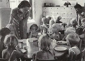 ”Bespisningen i vinteren 1944 har haft en noget anden karakter end i 1943. Vi har i år kun givet en varm ret. Dog har børnene fået en gulerod efter manden til hvilken de ofte har spist et par stykker groft rugbrød med smør.
